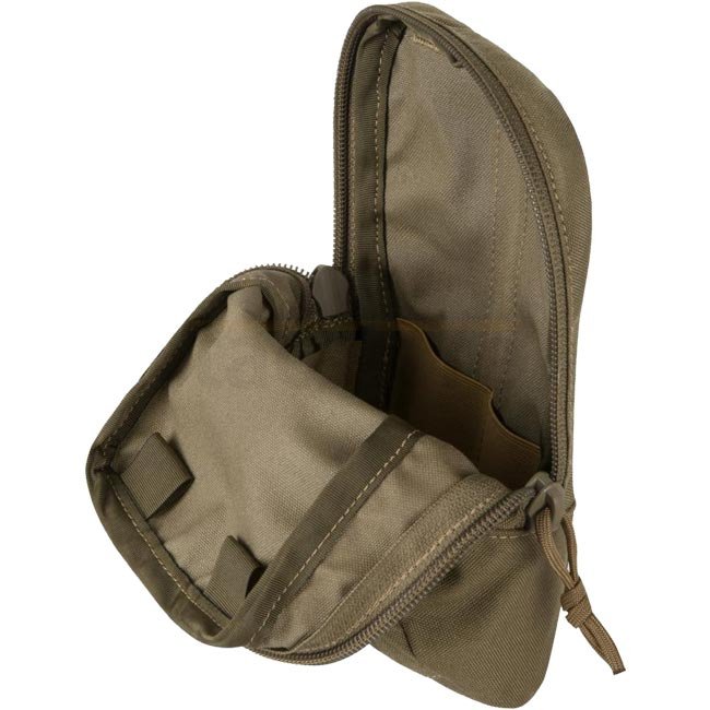 Compact utility pouch made with durable Cordura 500D, perfect for organizing and storing small to medium-sized items securely. Features PALS slots, elastic bands, and a zippered closure for easy access. Lightweight, measuring 6.3 cm x 20.3 cm x 15.2 cm an