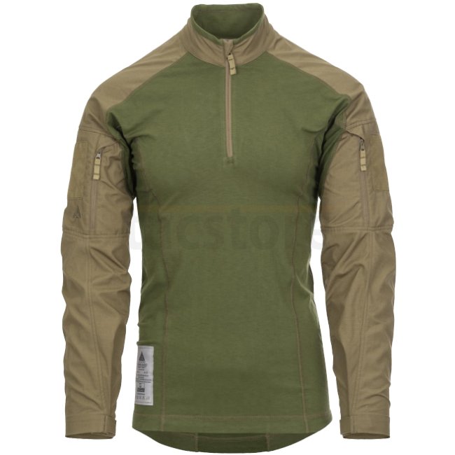 A combat uniform made of top-quality fabrics including Polartec PowerDry FR and NYCO fabric for durability, breathability, and moisture-wicking. Features Cordura 500D reinforcements on elbows, zippered bicep pockets, adjustable cuffs, and YKK zippers.