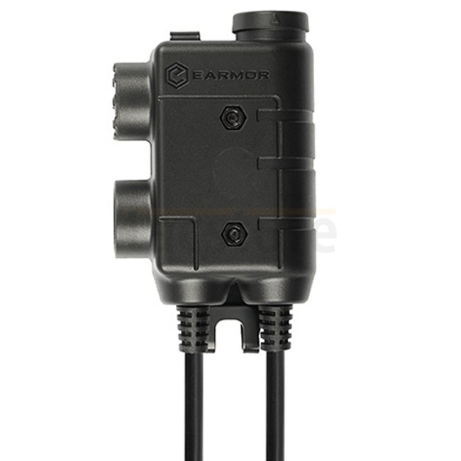 M56 Tactical PTT by Earmor is a dual‑channel PTT adapter compatible with Earmor headsets and MilSpec Nexus TP‑120/U‑174 systems. It integrates two COM ports and independent PTT buttons for dual radio setups and can be customized with different connection cables.