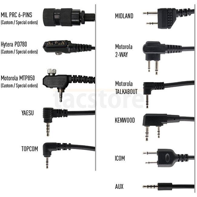 • Customizable plug types for different radio systems
