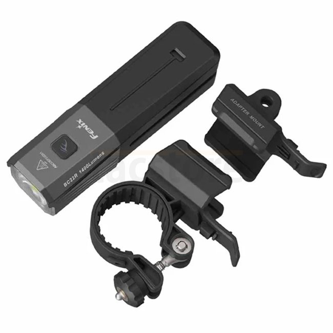 The Fenix BC22R is a rechargeable bicycle light offering 1,400 lumens of output. Its cut-off beam pattern reduces glare in traffic, while side light windows improve visibility. The light mounts on either side and features a swappable battery.