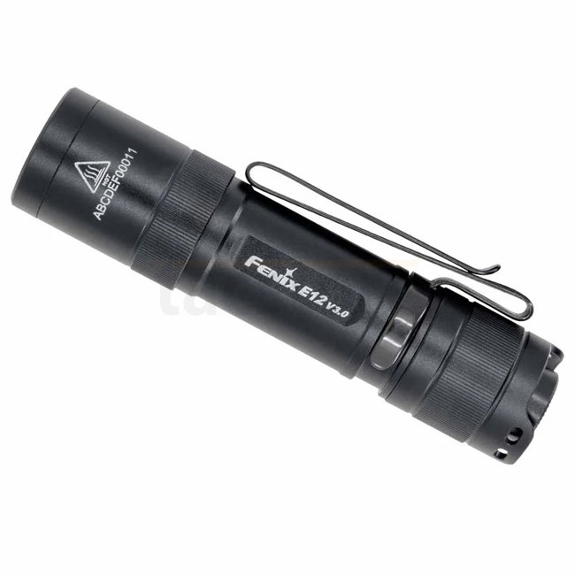 The Fenix E12 V3.0 runs on a single AA cell and outputs up to 200 lumens. It offers three brightness modes, memory function, and a magnetic tail switch. The housing is made of durable aluminum and rated IP68 for dust and water protection.