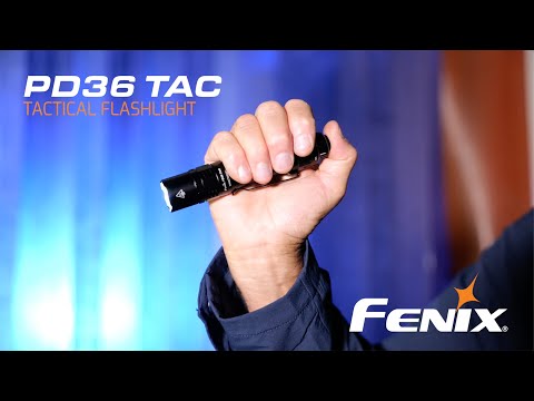 The Fenix PD36 TAC is the tactical variant in the PD series. It features a rotary tail switch to instantly toggle between Tactical mode (high output + strobe only) and Duty mode (full range of brightness levels + strobe). It is powered by a 21700 battery, reaching about 274 meters in beam throw.