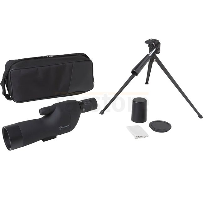 The Firefield 12-36x50 Straight Edge Spotting Scope Kit is blazing a new trail in the spotting scope category. Its practical, yet sophisticated design allows you to hunt down your objective like a hawk. This high quality scope features fully multi-coated lenses and a durable, rubber-armoured body that's submergible in water up to one meter and 100 percent waterproof and fog-proof. Featuring a comfortable, straight eyepiece, spotters can zero in on any size moving targets at short or long distances, perfect for tactical spotting. The 12-36x50SE Spotting Scope also features a nitrogen-purged housing with a built-in sunshade for added protection. With a camera mounting accessory sold separately, the 20-60x60SE Spotting Scope can create high magnification digiscope images with the click of a button. The unit, along with its heavy duty tripod, stows easily and securely into the thick nylon carrying case.