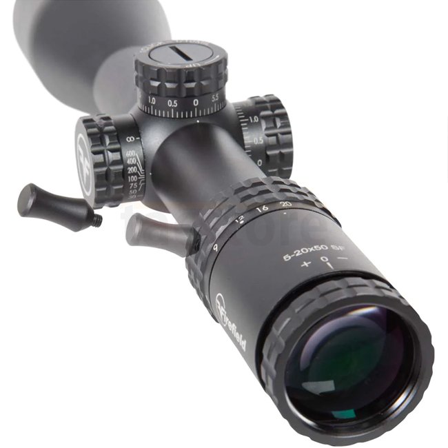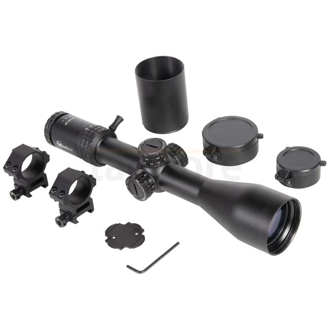 Magnification: 5-20x, Objective lens diameter: 50mm, Mil-Hash Reticle, Adjustment graduation: 1/10 MIL, Second Focal Plane, Aluminum material. Length: 310mm, Weight: 564g.