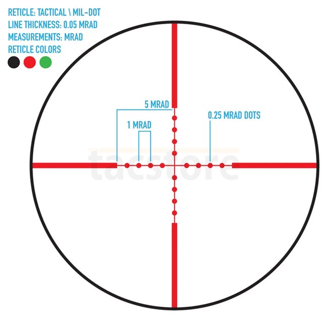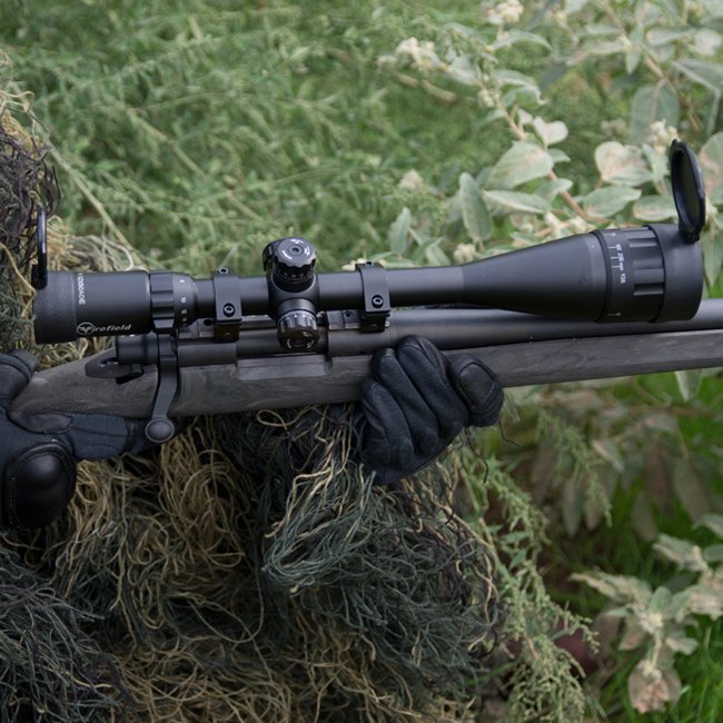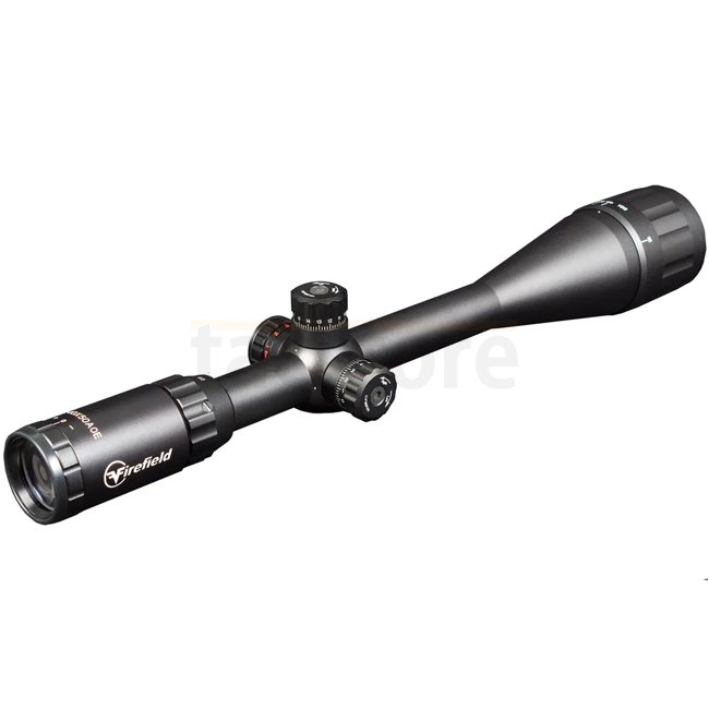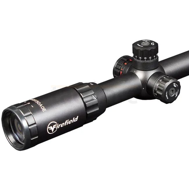 Firefield Tactical Riflescope with 10-40x magnification, Mil Dot reticle, and 1-inch tube diameter. Ideal for long-range shooting with IPX4 standard and aluminum housing. Weaver/Picatinny mount. Length 415mm, weight 879g, with 120 MOA max adjustments.
