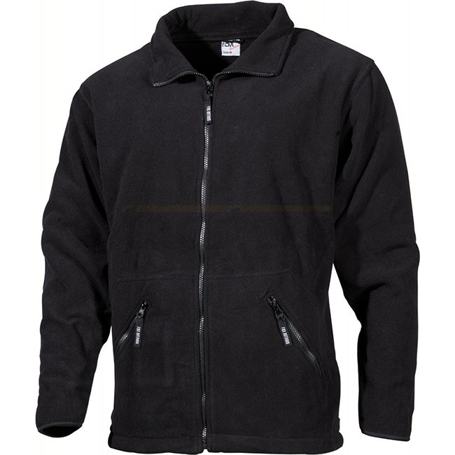 FoxOutdoor Arber Fleece Jacket in Black. Front zip, 2 hip pockets with zips, inside patch pocket with flap and velcro on the right bottom, drawstring on the sleeves, elastic drawstring with cord stopper on the waist. Material: 100% Polyester.