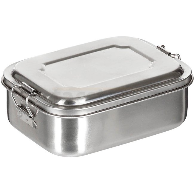Compact FoxOutdoor Lunchbox measuring 16 x 13 x 6.2 cm. Lightweight, sturdy, and durable design with 2 lateral clips for secure closure. Features a snap-on lid and is dishwasher-safe, ensuring no odors. Offers a capacity of approximately 0.75 liters.