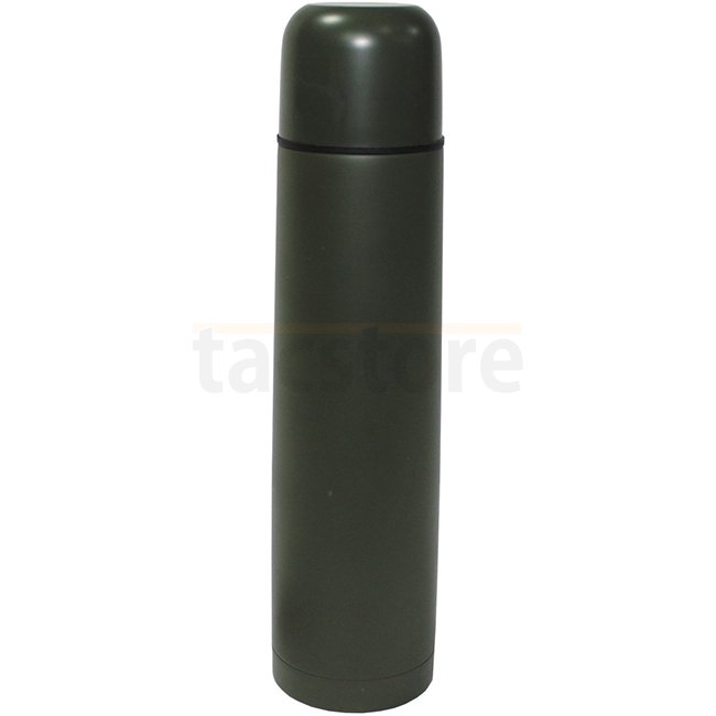 FoxOutdoor Vacuum Thermos Bottle 500 ml - Olive. Unbreakable, odor- and tasteless. Screw closure with snap spout. Screw cap usable as mug. Dimensions: ca. 7 x 25 cm (Di x H).