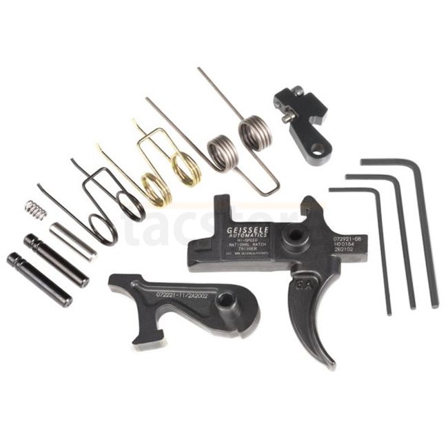 The Geissele Hi-Speed National Match Triggers – Large Pin Series are adjustable triggers designed for competition, hunting, tactical, and military use. They allow fine-tuning of the first and second stage pull weight, total pull weight, over-travel, and sear engagement to suit the shooter’s preferences.
