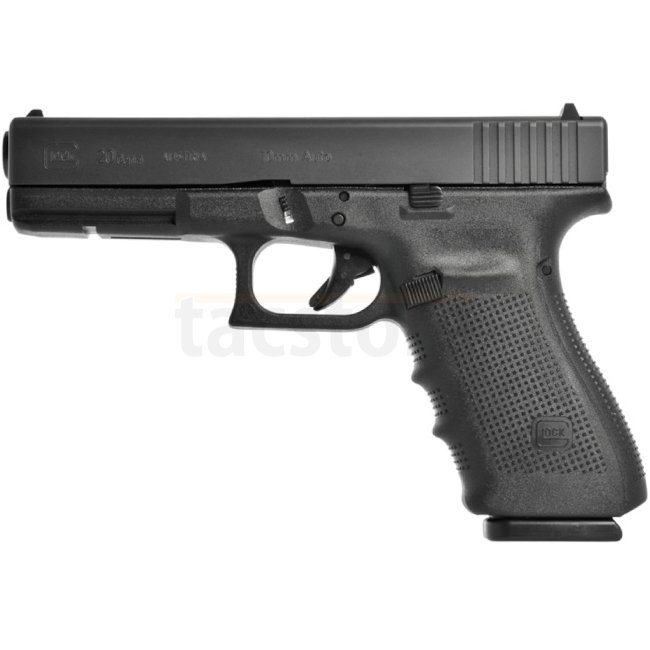 The Glock 20 Gen 4 delivers unmatched power and performance with its 10mm Auto caliber, making it an ideal choice for hunting, self-defense, and outdoor use. The Gen 4 upgrades include a reversible magazine catch, improved grip texture, and interchangeable backstraps for a customizable fit. With its robust construction and Safe Action® system, the Glock 20 Gen 4 is designed to handle the high pressures of the 10mm Auto round while maintaining Glock's renowned reliability.