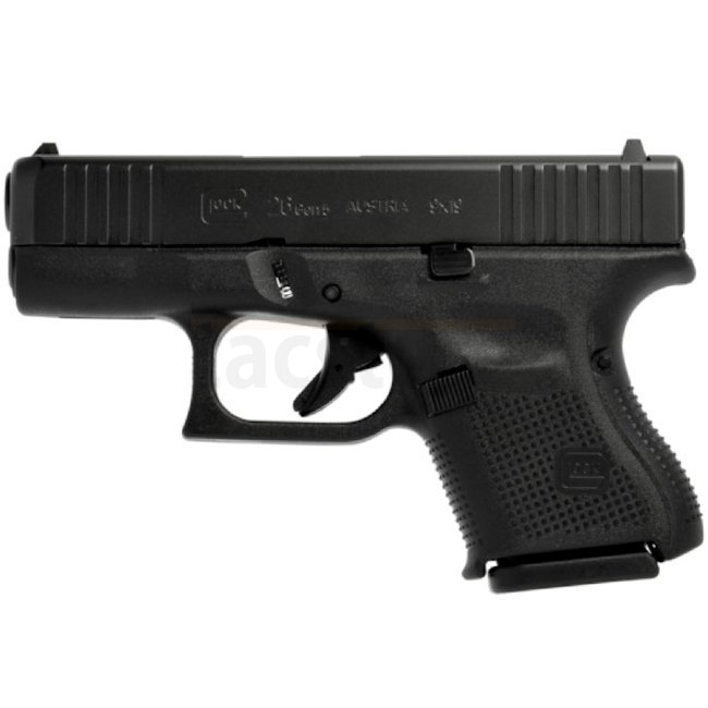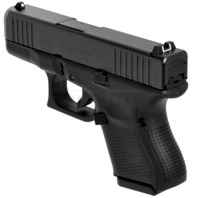 The Glock 26 Gen 5 FS, also known as the "Baby Glock," is a subcompact pistol chambered in 9x19mm, designed for concealed carry and self-defense. The Gen 5 upgrades include a Glock Marksman Barrel (GMB) for improved accuracy, front serrations (FS) for enhanced slide manipulation, a flared magazine well for quicker reloads, and the removal of finger grooves for a more ergonomic grip. Compact yet powerful, the Glock 26 Gen 5 FS offers unparalleled reliability for both professionals and civilians.