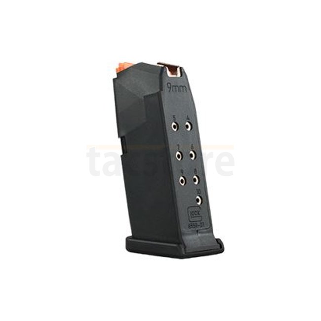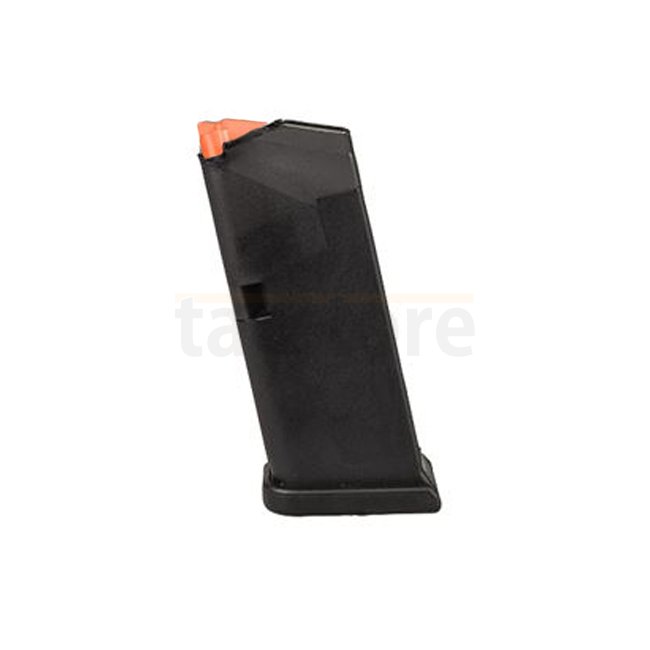 This Glock 26 magazine offers a 10-round capacity, featuring a high-visibility orange follower for enhanced safety and reliability. It is compatible with Glock 26 pistols across multiple generations.