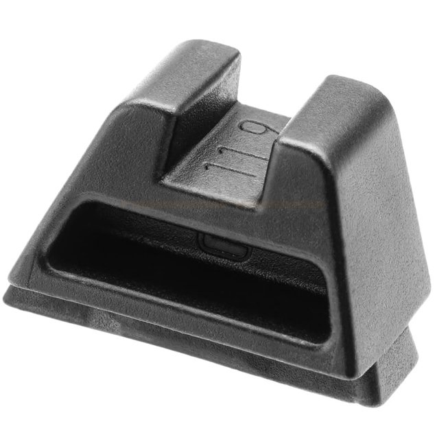 The Glock Steel Rear Sight Suppressor/RDS 11.9 Luminescent is equipped with luminescent inserts that provide enhanced visibility in low-light conditions. Designed for suppressor-height optics and red dot sights, it ensures optimal co-witnessing and durable performance with its steel construction.