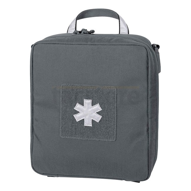 The Automotive Med Kit was designed as the main vehicular first aid kit. Its compact, flat form allows it to be fit under the seats, in side doors or seat pockets, while lack of sharp edges prevents snagging. The front part of the Med Kit has a large panel of loop velcro for individual marking, with a reflective panel for quick identification. Also handles are marked with reflective tape to facilitate their finding with minimal light. Thanks to a detachable shoulder strap, the Med Kit can be worn just like a messenger bag.