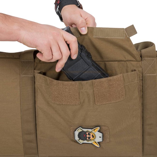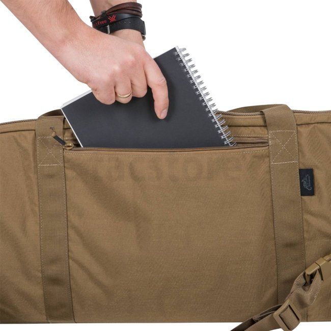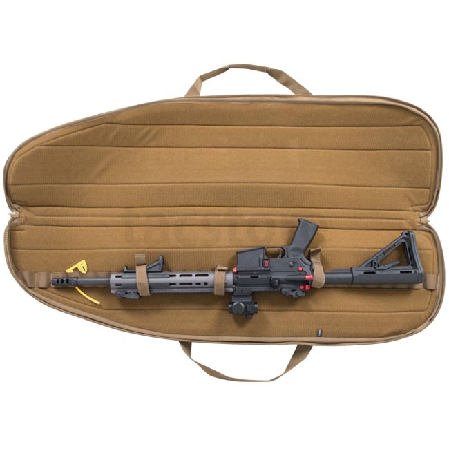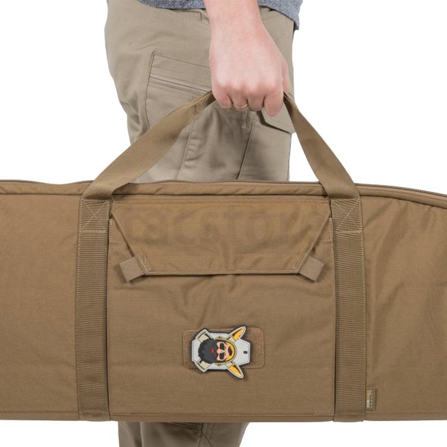 Helikon-Tex Basic Rifle Case - US Woodland: Durable rifle case designed to securely carry scoped AR carbine, featuring versatile Insert System, external pockets, weapon stabilizers, and adjustable shoulder strap. Weight: 1000g, Dimensions: 1140 x 290 x 60