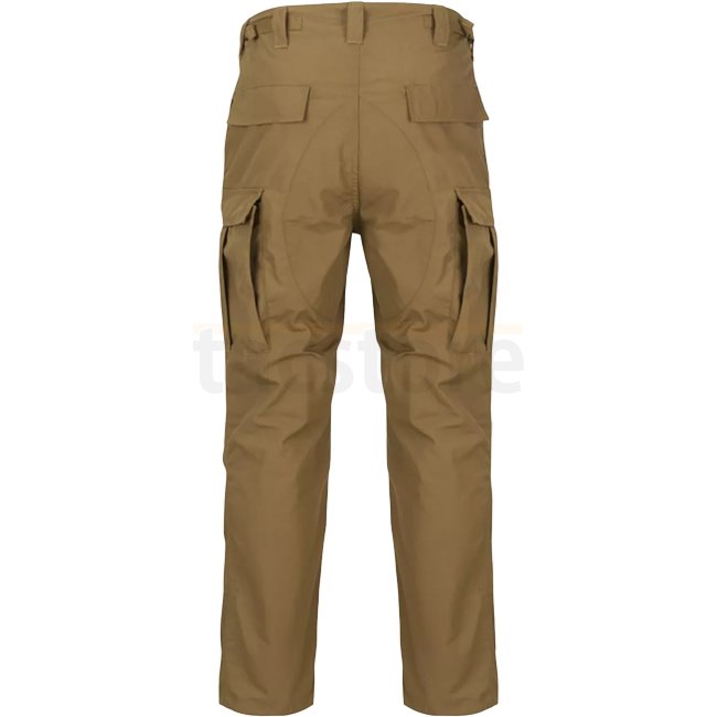 The Helikon-Tex BDU Mk2 Pants are an updated version of the classic Battle Dress Uniform trousers, tailored to meet the demands of contemporary users. Constructed from a durable cotton-polyester blend in a ripstop weave, these pants offer enhanced resistance to abrasions and tears. They feature seven strategically placed pockets, including two main hip pockets with reinforced edges, two rear pockets with hook-and-loop closures, two spacious buttoned cargo pockets, and a smaller front pocket suitable for items like a smartphone. Additional reinforcements on the knees and seat area increase durability, while adjustable waist straps and nylon leg cuffs allow for a customized fit.