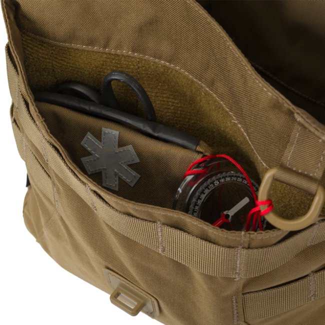 Since the dawn of time, man carried his basic equipment in a light leather bag, and in later times made of canvas. Such a simple bag was called a "Haversack". At first glance, the Haversack is simple, but in reality it is an advanced piece of equipment for the bushcraft line. It can accommodate a water bottle, food and equipment for lighting a fire. It is covered by a flap with a classic British fastener from the 80s. In the front pocket you can attach inserts from the VIS system. On the sides you can attach an axe, saw or knife. Additional equipment can be attached to MOLLE/PALS straps. It is comfortably worn on a thick 50 mm strap. The Haversack is a modern bag with a look reminiscent of the equipment of the last century.