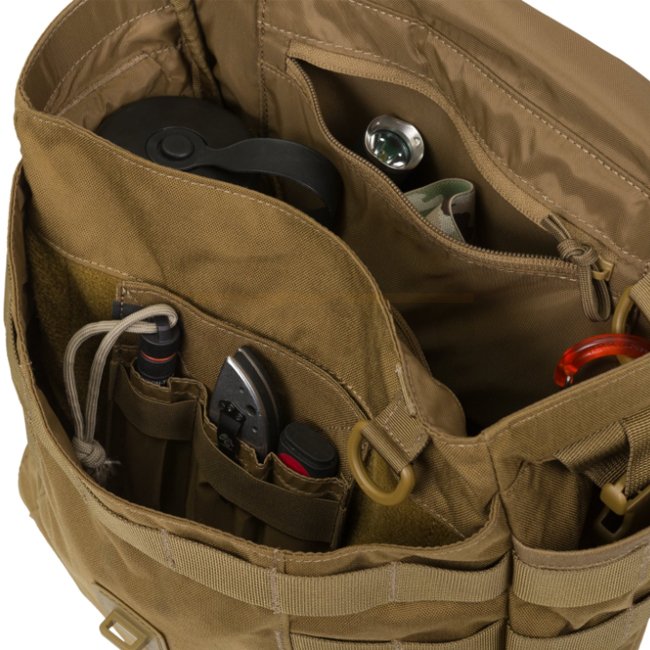 Helikon-Tex Bushcraft Haversack Bag - Coyote: Modern bushcraft bag inspired by classic equipment. Made from durable 500D Cordura, featuring multiple pockets, MOLLE/PALS compatibility, and comfortable 50mm strap.