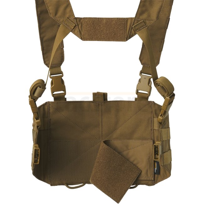 Helikon-Tex Chicom Chest Rig - Coyote: Versatile Chest Rig inspired by 1940s equipment, ideal for tactical operations, and shooting training. Features 3 Velcro pockets for AR or AK magazines, expandable design, MOLLE/PALS panels for additional pockets, st