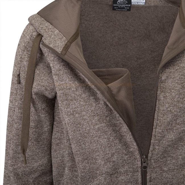 Melange Light Tan Helikon-Tex Covert Tactical Hoodie FullZip is made of 100% Polyester with YKK zippers. Weighs 695g.