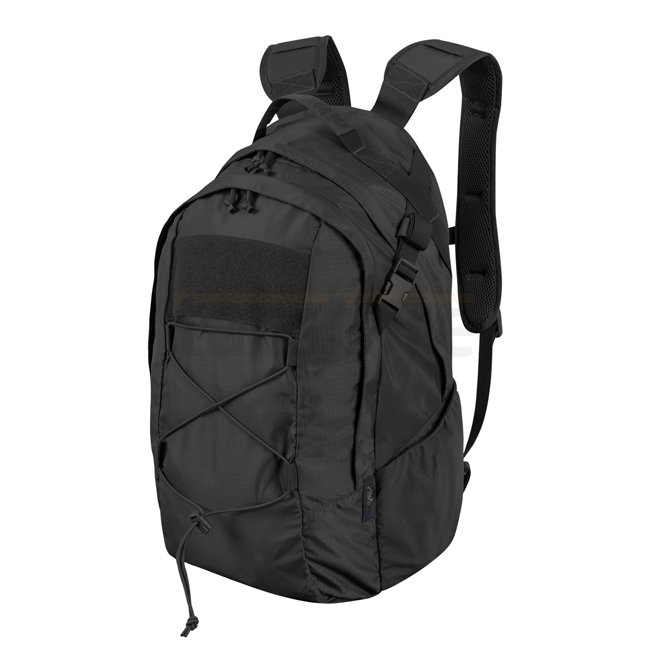 Helikon-Tex EDC Lite Backpack - Black. Lightweight rip-stop nylon backpack with comfortable carrying system, velcro ID panel, anatomical shoulder straps, and YKK zippers. Capacity: 21l. Dimensions: 310x460x150mm. Weight: 575g.