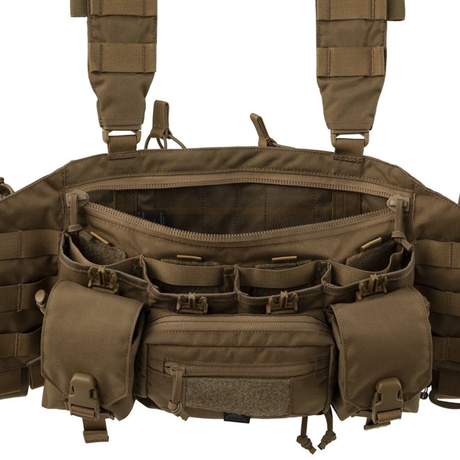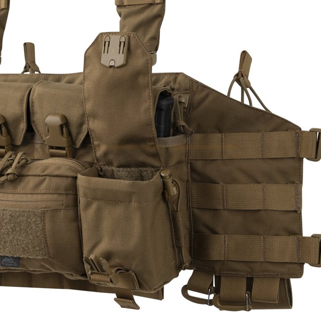 The Helikon-Tex Guardian Recce Chest Rig is a lightweight and versatile chest rig designed for tactical operations and outdoor activities. It features four main magazine pouches compatible with AR/AK magazines, as well as additional storage for small gear like tools, maps, radios and other equipment. The MOLLE-compatible webbing on both sides enables further customization. The adjustable shoulder and waist straps provide a comfortable fit and allows you to wear the Chestrig standalone or over body armor. It's ideal for reconnaissance loadouts, allowing for easy access to essential gear during dynamic situations.
