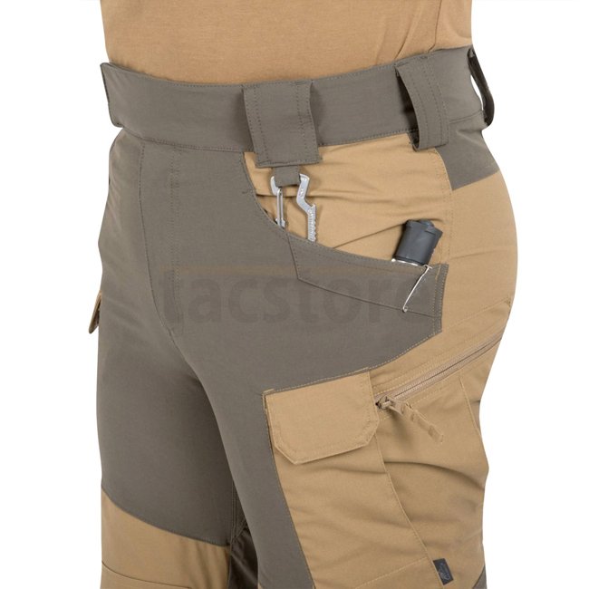 Helikon-Tex Hybrid Outback Pants Duracanvas - Taiga Green / Black - S - Regular. Hybrid construction for durability & movement. Wax-impregnable. Anatomical cut. Reinforced pockets & knees. Leg cuff adjustment. Durable & partly waterproof.