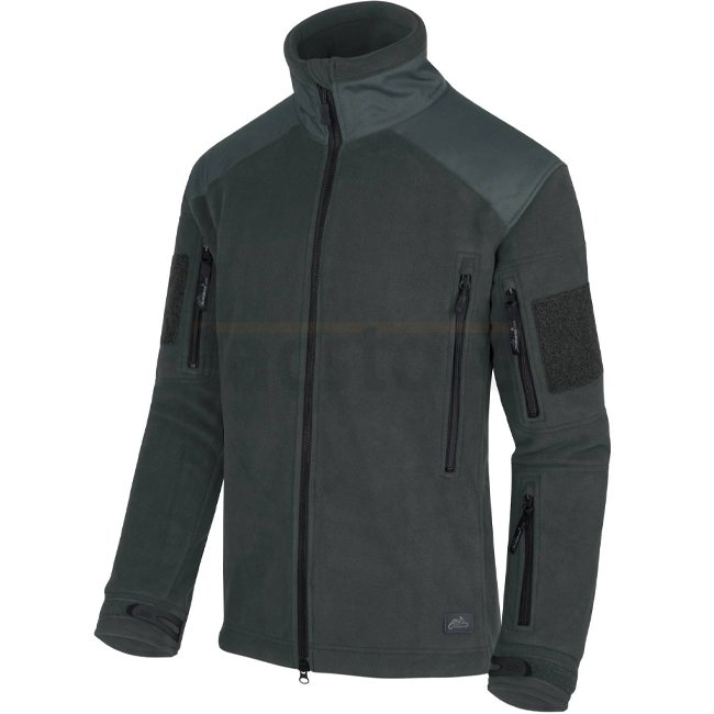 "Helikon-Tex Liberty Heavy Fleece Jacket - Jungle Green - XS" is a heavy-duty fleece jacket designed for cold environments. It features reinforced elbow and shoulder areas for durability during tactical operations. The jacket offers extreme insulation, mu