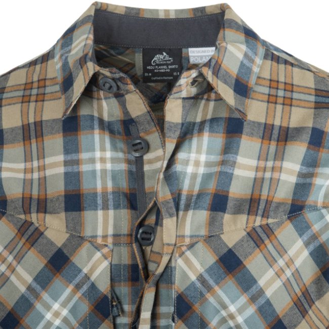"Helikon-Tex MBDU Flannel Shirt - Timber Olive Plaid - XS" - Stay classy on the battlefield with our new MBDU Flannel Shirt. Made of lightweight, durable fabric with antibacterial properties and UPF50 index. VersaStretch panels for freedom of movement, zi