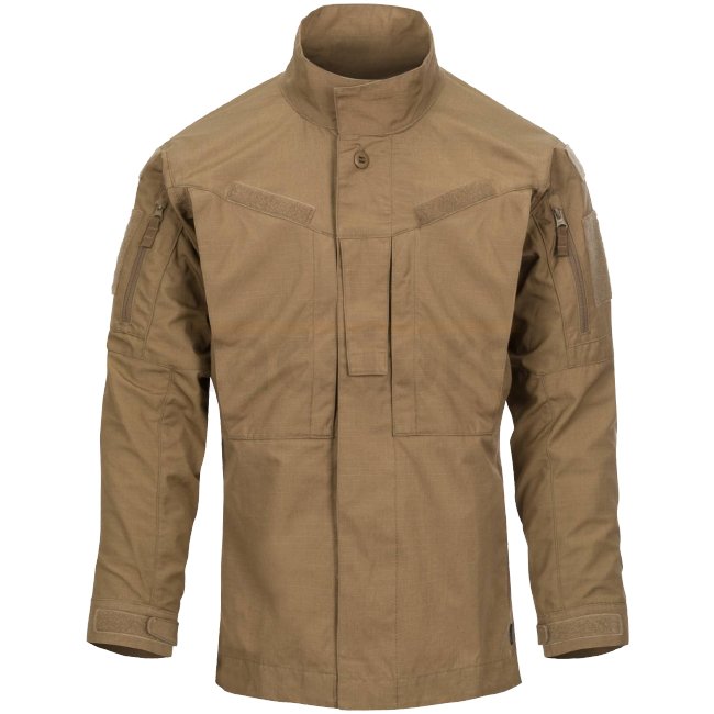 The MBDU Shirt is a part of the advanced field uniform Modern Battle Dress Uniform. This uniform was made of top quality fabrics, carefully chosen to provide not only the high durability, but also freedom of movement, which is utmost important on the battlefield. The shirt has profiled fit with side stretchable panels made of VersaStretch fabric. The classic collar can be easily transformed into a stand-up collar, and closed with hook&loop tape. On the chest there are two zippered pockets as well as loop panels for patches above them. Additionally, in the center part there is a rank tab. Mesh panels in arm pits will provide enhanced breathability. On the biceps there are zippered pockets with loops inside for dummy cording. Additionally, there are loop large loop panels for patches on biceps as well as smaller ones above them for flags or IFF patches. Canadian buttons were used for durability. Pockets have been added to the color versions: PL Woodland, MultiCam Black™ and Flecktarn, enabling the use of soft protective inserts.