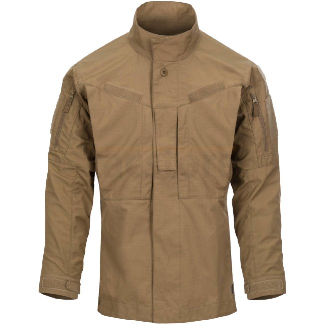 The Helikon-Tex MBDU Shirt is a part of the advanced field uniform Modern Battle Dress Uniform, designed for high durability and freedom of movement on the battlefield. It features a profiled fit with side stretchable panels, stand-up collar, zippered poc