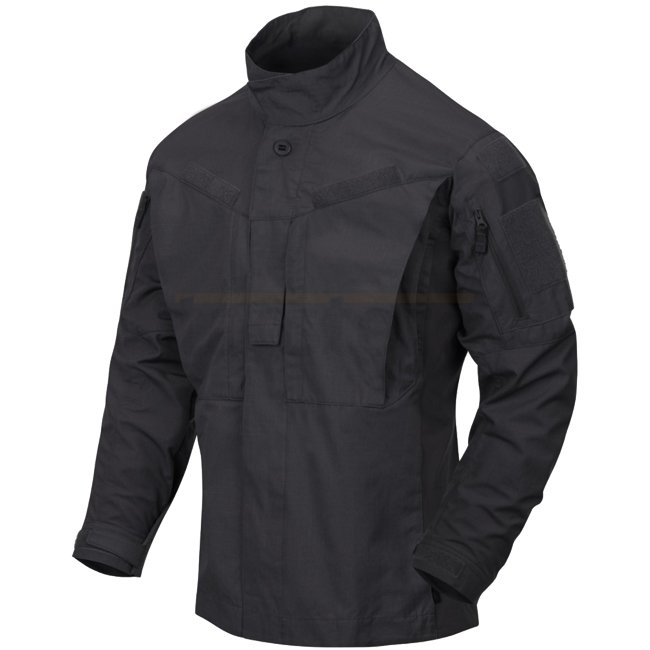 The Helikon-Tex MBDU Shirt in Shadow Grey, XS size, is part of the advanced field uniform Modern Battle Dress Uniform. Made from high-quality fabrics for durability and freedom of movement, it features a profiled fit with stretchable side panels, converti