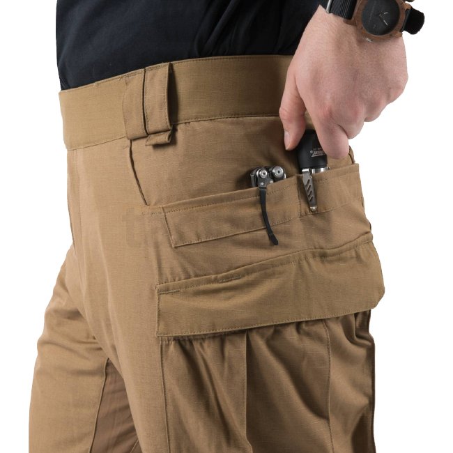 The MBDU Pants is a part of the advanced field uniform Modern Battle Dress Uniform. This uniform was made of top quality fabrics, carefully chosen to provide high durability as well as freedom of movement, which is utmost important on the battlefield. The pants have loose, profiled cut. The belt is fastened with the hook&loop tape that provides additional adjustment. Wide beltloops will support belt up to 50 mm wide, even with holster or magazine pouches. Gussets made of elastic VersaStretch fabric are placed on the back area and in the crotch for additional freedom of movement. Classic hip pockets have reinforcements on the edges to avoid being damaged by knife clips. Additional back pockets, with reinforced edges will fit larger items like carbine magazine. On the thighs there are large, spacious, buttoned cargo pockets. On lower legs there are smaller pockets, closed with hook&loop tape, that will fit essentials like field dressing. Pockets have been added to the color versions: PL Woodland, MultiCam Black and Flecktarn, enabling the use of soft protective inserts.