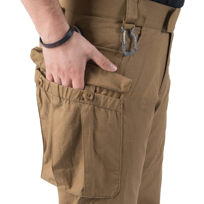 The MBDU Pants is a part of the advanced field uniform Modern Battle Dress Uniform. This uniform was made of top quality fabrics, carefully chosen to provide high durability as well as freedom of movement, which is utmost important on the battlefield. The pants have loose, profiled cut. The belt is fastened with the hook&loop tape that provides additional adjustment. Wide beltloops will support belt up to 50 mm wide, even with holster or magazine pouches. Gussets made of elastic VersaStretch fabric are placed on the back area and in the crotch for additional freedom of movement. Classic hip pockets have reinforcements on the edges to avoid being damaged by knife clips. Additional back pockets, with reinforced edges will fit larger items like carbine magazine. On the thighs there are large, spacious, buttoned cargo pockets. On lower legs there are smaller pockets, closed with hook&loop tape, that will fit essentials like field dressing. Pockets have been added to the color versions: PL Woodland, MultiCam Black and Flecktarn, enabling the use of soft protective inserts.