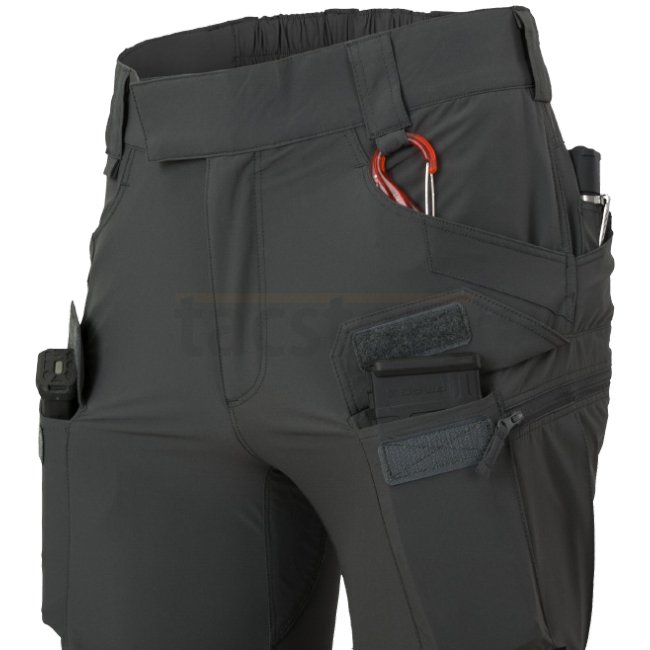 Many of the customers operate not only in cities, but in the boondocks as well. Listening to their positive feedback about using UTP, the designers have created their special outdoor version & voila, thats Outdoor Tactical Pants. They have retained all functionalities of their predecessor, but some details were tweaked to better fit the terrain use. These pants are made of VersaStretch Lite - the lighter, much more breathable version of the standard VersaStretch fabric, therefore they are just perfect for warm days, but still, due to the DWR coating, they will protect you against light rain or wind. The cut and pocket layout retain the civilian outlook, not disclosing the operator. The OTP design allows to carry all essential equipment, and anatomic cut does not hinder movements. Elastic waistband and velcro-closure allow a degree of adjustability within size. Large belt loops allow wide belts to be used (EDC, UTL or Cobra, up to 50 mm width). The jeans cut on the rear part of the pants prevents them from sliding down. Pocket layout allows to distribute the load close to the center mass & around hips and waist. Pocket edges are reinforced to withstand constant sliding of the light and knives clips. Two Velcro-closed front pockets are big enough to take a smart phone & or a spare rifle (AK/AR) magazine. Zippered thigh pockets seem small enough, but they would carry a wallet or a small pouch. A wide variety of colors allow to find the proper one to match the working conditions or other garments.
