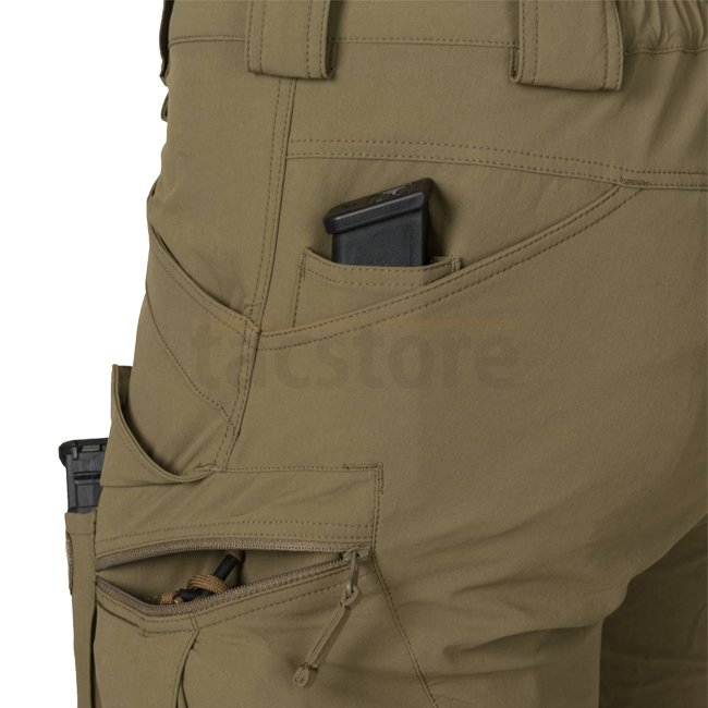 Many of our customers operate not only in cities, but in the boondocks as well. Listening to their positive feedback about using UTP®, our designers have created their special outdoor version & voila, thats Outdoor Tactical Pants®. They have retained all functionalities of their predecessor, but some details were tweaked to better fit the terrain use. These pants are made of VersaStretch® Lite - the lighter, much more breathable version of our standard VersaStretch® fabric, therefore they are just perfect for warm days, but still, due to the DWR coating, they will protect you against light rain or wind. The cut and pocket layout retain the civilian outlook, not disclosing the operator. The OTP® design allows to carry all essential equipment, and anatomic cut does not hinder movements. Elastic waistband and velcro-closure allow a degree of adjustability within size. Large belt loops allow wide belts to be used (EDC, UTL® or Cobra®, up to 50 mm width). The jeans cut on the rear part of the pants prevents them from sliding down. Pocket layout allows to distribute the load close to the center mass & around hips and waist. Pocket edges are reinforced to withstand constant sliding of the light and knives clips. Two Velcro-closed front pockets are big enough to take a smart phone & or a spare rifle (AK/AR) magazine. Zippered thigh pockets seem small enough, but they would carry a wallet or a small pouch. A wide variety of colors allow to find the proper one to match the working conditions or other garments.
