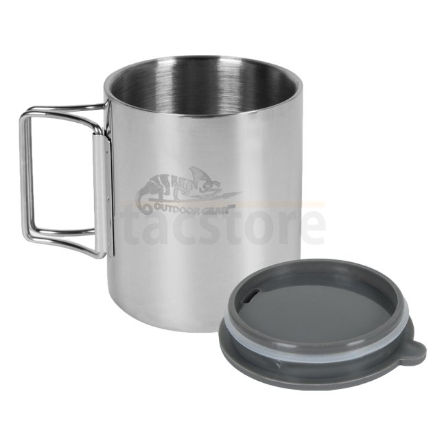 With vacuum-insulated double walls and the tight lid, cup keeps drinks warm, even in very cold conditions. The huge convenience is a folding handle.