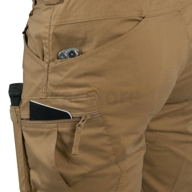 "Some products have a kind of cult following. For each manufacturer facing a crowd of satisfied clients is not only enormous joy, but also confirmation that the product is right. What makes Urban Tactical Pants® so special? The cut and pockets layout employed in these pants maintain civilian enough outlook to retain anonymity, while retaining full functionality of combat pants, capable of supporting tactical essentials – at the same time not colliding with human anatomy. Elastic Velcro-closed belt allows easy adjustment. Wide belt loops allow as wide as 50 mm belt, including all HTX tactical belts: EDC, UTL® or Cobras®. Plus the cut employed, classical for blue jeans, reduced the tendency to ride down while in use. By judicious layout of the pockets, equipment can be placed close to the center mass, around the hips and waist. Front and rear pockets edges are reinforced to withstand constant movement of light or knife clips. Two Velcro-closed front pockets are big enough to carry a smartphone – or even an AR/AK rifle magazine. Thigh zippered pockets look flat – but its design allows pouches or wallets to be carried with ease. Bespoke internal pockets await being filled with Low Profile Protective Pads®. Three types of fabric plus wide variety of colors allows to match trousers to the rest of wardrobe or working conditions. Belt not included"