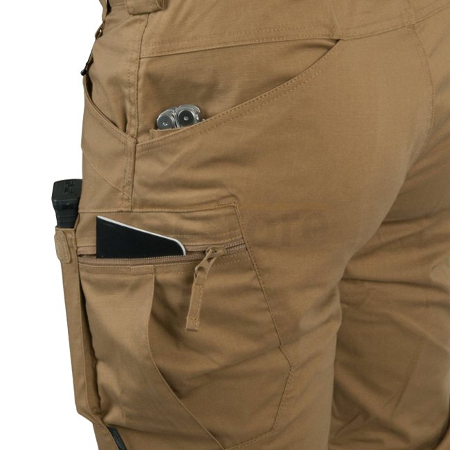 Some products have a kind of cult following. For each manufacturer facing a crowd of satisfied clients is not only enormous joy, but also confirmation that the product is right. What makes Urban Tactical Pants so special? The cut and pockets layout employed in these pants maintain civilian enough outlook to retain anonymity, while retaining full functionality of combat pants, capable of supporting tactical essentials – at the same time not colliding with human anatomy. Elastic Velcro-closed belt allows easy adjustment. Wide belt loops allow as wide as 50 mm belt, including all HTX tactical belts: EDC, UTL or Cobras. Plus the cut employed, classical for blue jeans, reduced the tendency to ride down while in use. By judicious layout of the pockets, equipment can be placed close to the center mass, around the hips and waist. Front and rear pockets edges are reinforced to withstand constant movement of light or knife clips. Two Velcro-closed front pockets are big enough to carry a smartphone – or even an AR/AK rifle magazine. Thigh zippered pockets look flat – but its design allows pouches or wallets to be carried with ease. Bespoke internal pockets await being filled with Low Profile Protective Pads. Three types of fabric plus wide variety of colors allows to match trousers to the rest of wardrobe or working conditions. Belt not included