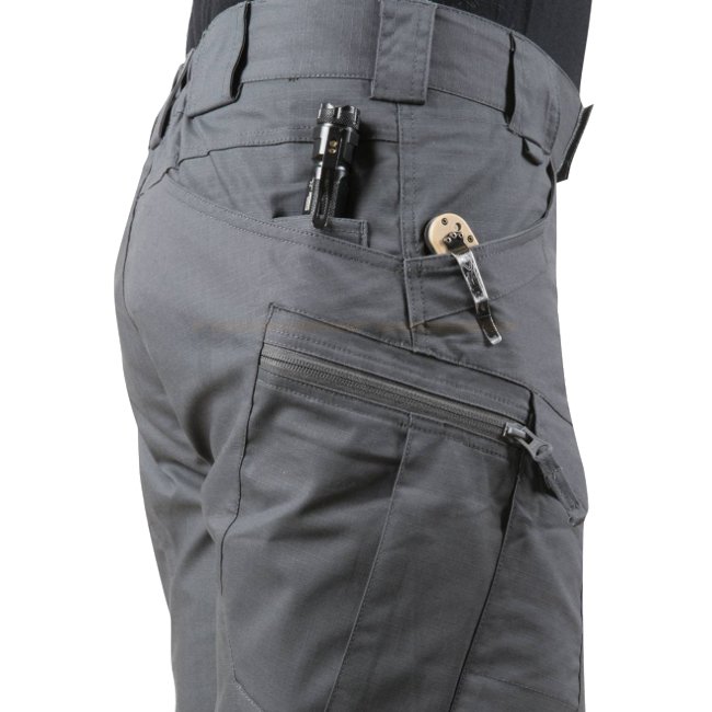 "What to do, when it’s stifling hot and yet you need to go tactical and need all the tactical functionality of the UTP® pants? Try the UTS®, Urban Tactical Shorts® or our best-selling pants cut-down version. The cut and pockets layout allow them to stay civilian enough not to disclose the wearer’s identity, while still allowing to wear full set of tactical equipment. Elastic velcro-closed belt allows a measure of adjustment within the size. Large belt loops allow wide belts like EDC, UTL® or Cobra®. Plus the cut (nicked from blue jeans, out of all to choose from) prevents loosing the shorts while wearing. By judicious layout of the pockets, equipment can be placed close to the center mass, around the hips and waist. Front and rear pockets edges are reinforced to withstand constant movement of light or knife clips. Two velcro-closed front pockets are big enough to carry a smartphone – or even an AR/AK rifle magazine. Thigh zippered pockets look flat – but its design allows pouches or wallets to be carried with ease. A wide variety of colors allows to match shorts to the rest of wardrobe or working conditions. Belt not included"