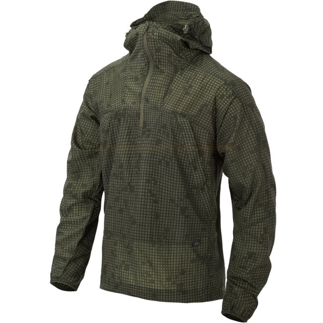 Helikon-Tex Windrunner Windshirt - Desert Night Camo - XS: Ultralight Windshirt made of tight-woven Nylon fabric, ideal for wind and light rain protection. Features include armpit ventilation, channel pocket, hood with visor, elbow reinforcements, YKK zip