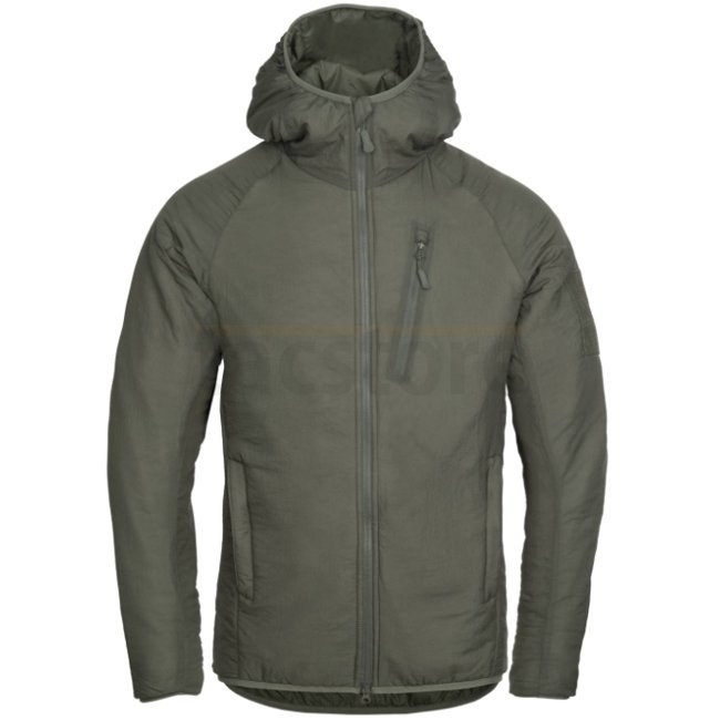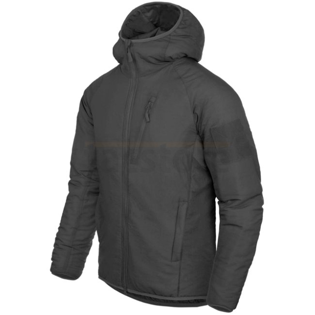 Stay warm and comfortable with the Helikon-Tex Wolfhound Climashield Hoodie in Black, size L. Made with WindPack nylon exterior layer and Climashield Apex padding, this hoodie is lightweight, packable, and durable. Features three external zippered pockets