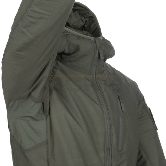 Stay warm and comfortable with the Helikon-Tex Wolfhound Climashield Hoodie in Black. Lightweight, packable design with WindPack nylon outer layer and Climashield Apex padding. Features multiple zippered pockets, adjustable hood, YKK zippers, and loop pan