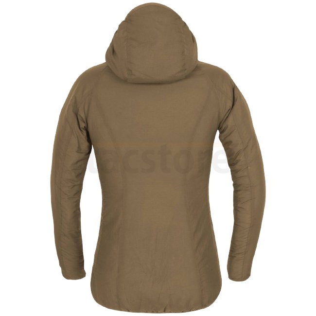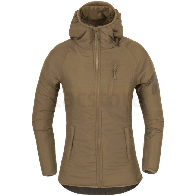 Stay warm and protected with the Helikon-Tex Women's Wolfhound Hoodie Jacket in Tiger Stripe - XS. Lightweight, insulated design with DWR layer for rain protection. Climashield Apex insulation provides thermal comfort even when wet. Nylon fabric with dens