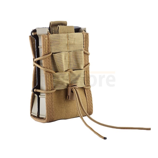 High Speed Gear X2R Taco Double Rifle Mag Pouch - Coyote is a versatile pouch that holds two rifle magazines, fitting most rifle magazines. It features a MALICE⢠Clip included for secure attachment.