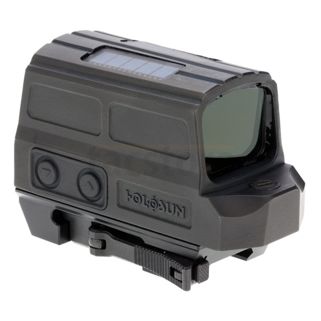 Equipped with a robust titanium housing and solar cells. Thanks to the Holosun MRS (Multi Reticle System) the reticle can be switched from a 2 MOA dot to a 2 MOA dot with 65 MOA circle.