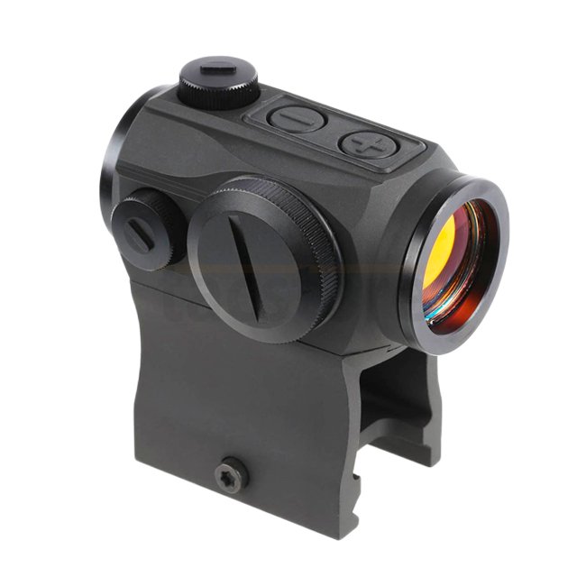 The HS503G ACSS CQB Reticle Dot sight has the external battery housing on the right side, this provides easy access to the battery. This sight includes 50,000 hour battery life, is parallax free, and has a durable PEO/MAO finish. Add to this an auto wake feature that automatically turns on the scope when it is moved and an adjustable 8 hour auto-shutoff. This scope comes with a high and a low mount. The HS503G is compatible with all T1 aftermarket mounts of other manufacturers.