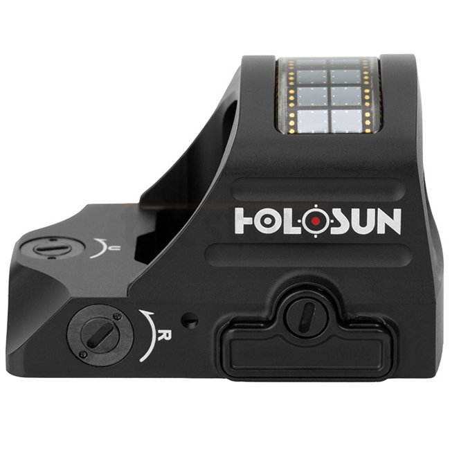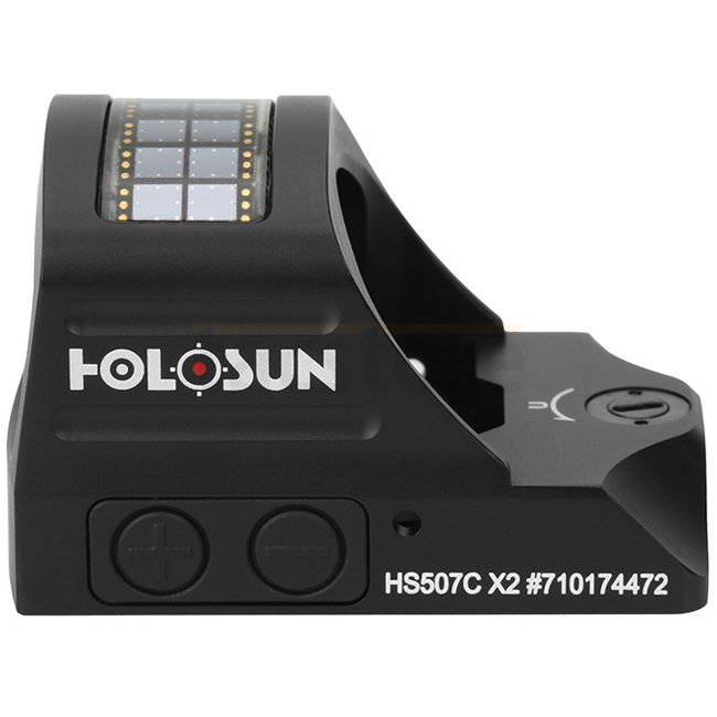 The Holosun HS507C Micro Red Dot is a pistol-sized optic with an open frame for a large view, with clear glass and a rugged 7075 aluminum housing. It is powered by a CR2032 battery and Holosun’s innovative Solar Fail-safe back up. The HS507C will run up to 10 years on a single battery on setting 6 (dot only). Featuring the Multi-reticle system, the HS507C allows the operator to switch between a 32 MOA circle with a 2 MOA dot, a 2 MOA dot only, or a 32 MOA ring only, all at the push of a button. Better yet, the same LED projects all three reticles, so no re-zeroing is necessary. It comes equipped with Holosun's Shake Awake technology with last setting recall. This optic has all features in one tough, small package and is compatible with Trijicon RMR footprint mounts.