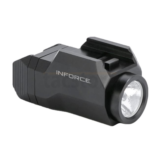 Inforce WILD1 Weapon Mounted Light - Black. Compact, durable 6061-T6 aluminum construction. MIL-STD-1913 mount for Picatinny/Glock. Powerful LED with 500 Lumens output. Waterproof up to 20m. Ideal for tactical use.